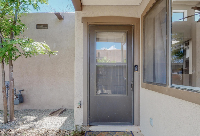 Enjoy this charming three-bedroom, two-bath townhome. Located on a cul-de-sac in central Santa Fe, close to shopping, restaurants, parks, and much more. Home includes tons of natural light in the living areas and a lovely wood burning fireplace. This cute property has an open kitchen and a separate dining room area. Enjoy the three large bedrooms and two full baths. Sunsets can be seen in the landscaped backyard. The home includes a single-car garage. This house is a must-see, this will not last long.